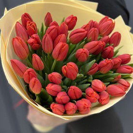Подарок, который станет символом любви и красоты. Великолепный букет из 51 красного тюльпана, выращенных в России. Этот букет впечатляет своим количеством и яркостью, а также оформлен в стильной дизайнерской упаковке. Красные тюльпаны символизируют страсть, любовь и уважение. Они идеально подходят для романтических свиданий, признаний в любви, а также для празднования важных событий, таких как дни рождения или юбилеи. 51 красный тюльпан обеспечивает эффектное визуальное впечатление. Все тюльпаны отобраны с любовью, гарантируя высшее качество и долговечность. Стильная упаковка подчеркивает красоту цветочной композиции и делает её ещё более привлекательной. Такой букет станет прекрасным подарком для близкого человека, подруги, мамы или любимой.